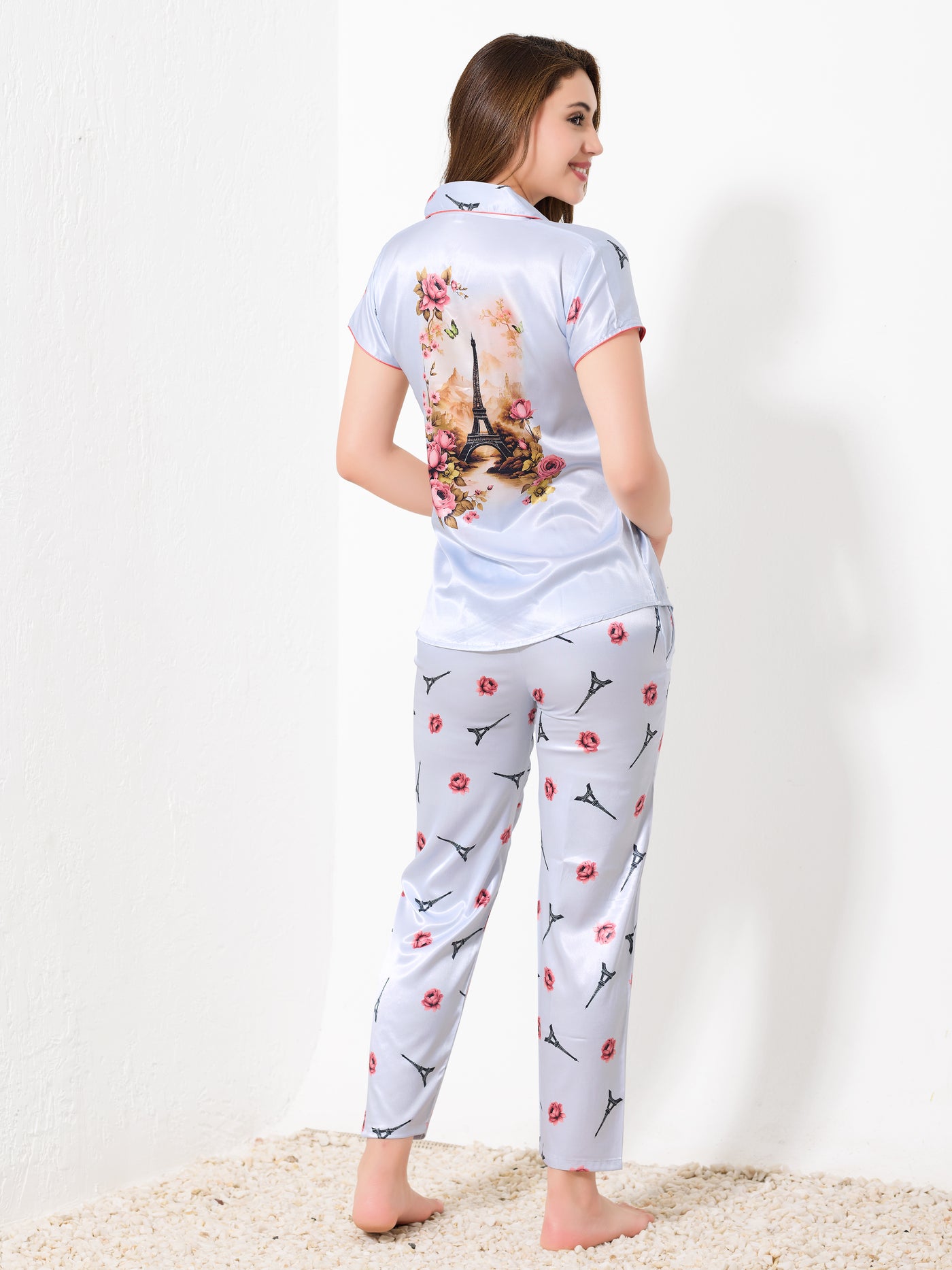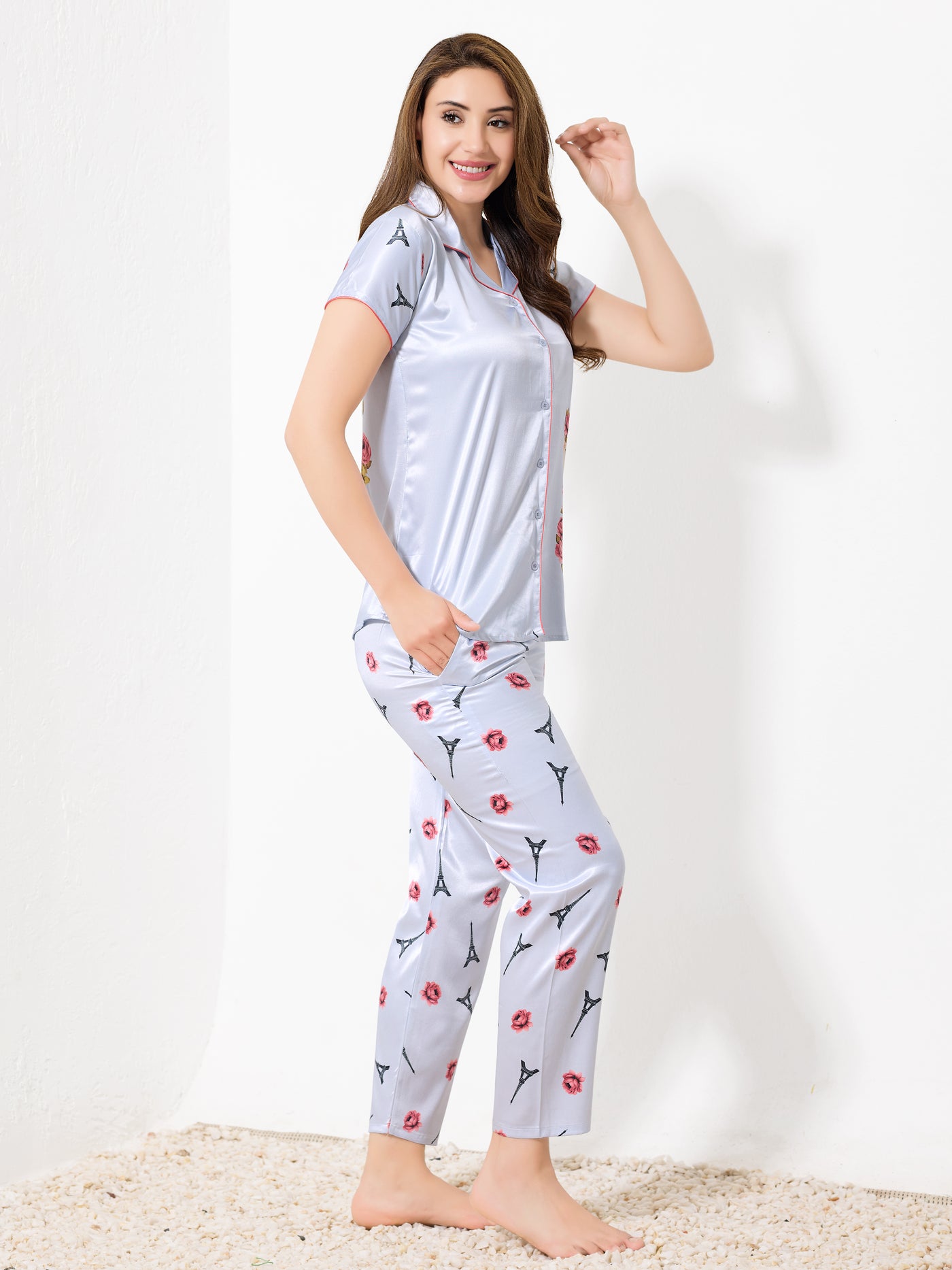Priincezz Nightwear presents this luxurious lilac 3-piece satin nightwear set, designed for ultimate comfort and style. The set includes a button-down shirt, matching pants, and a comfortable short, making it a versatile loungewear essential. Crafted from silky-smooth satin, it offers a soft, breathable feel, while the notched collar and relaxed fit add a touch of sophisticated charm.