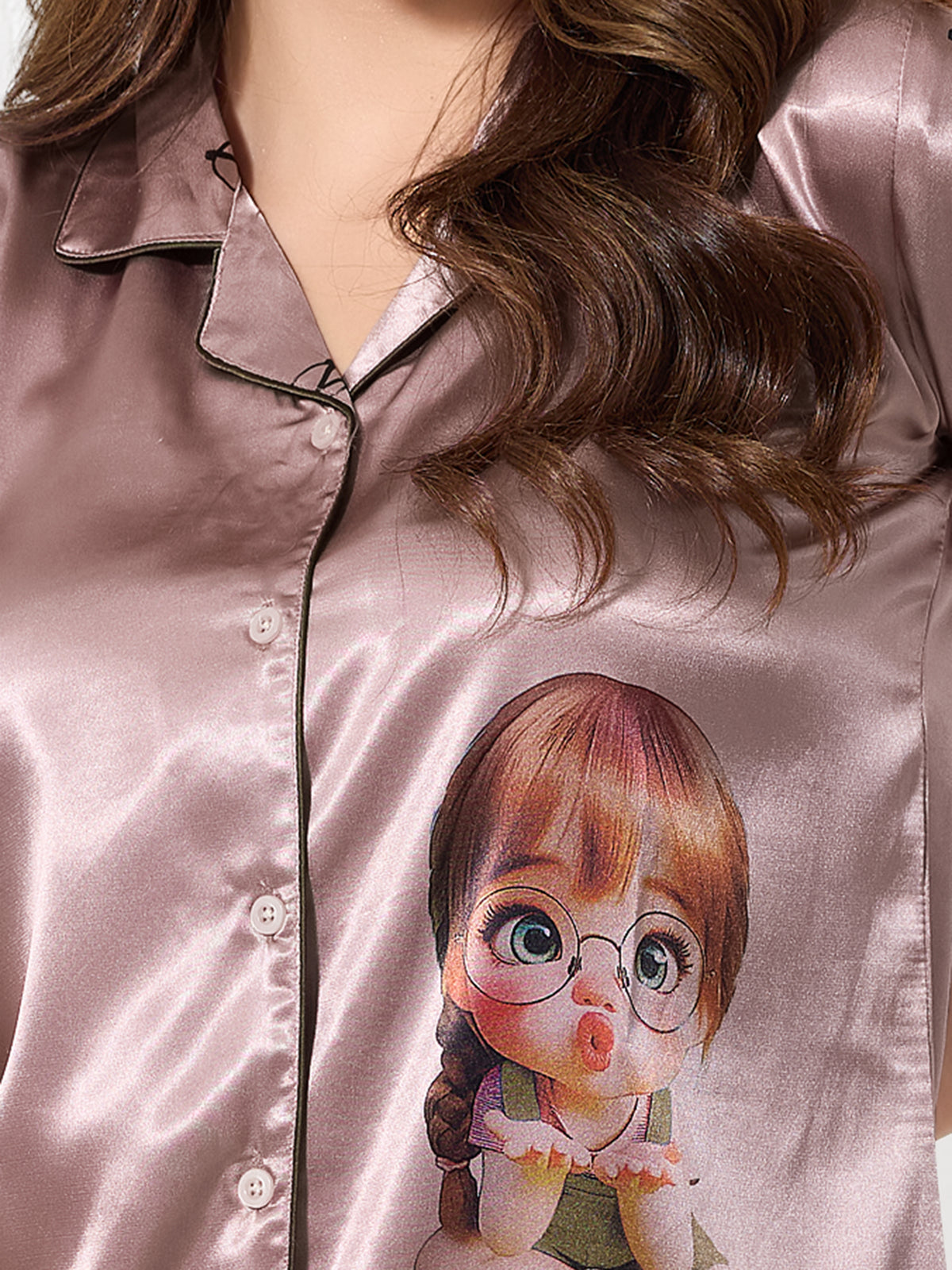 Mocha Brown Satin 3pc Nightsuit