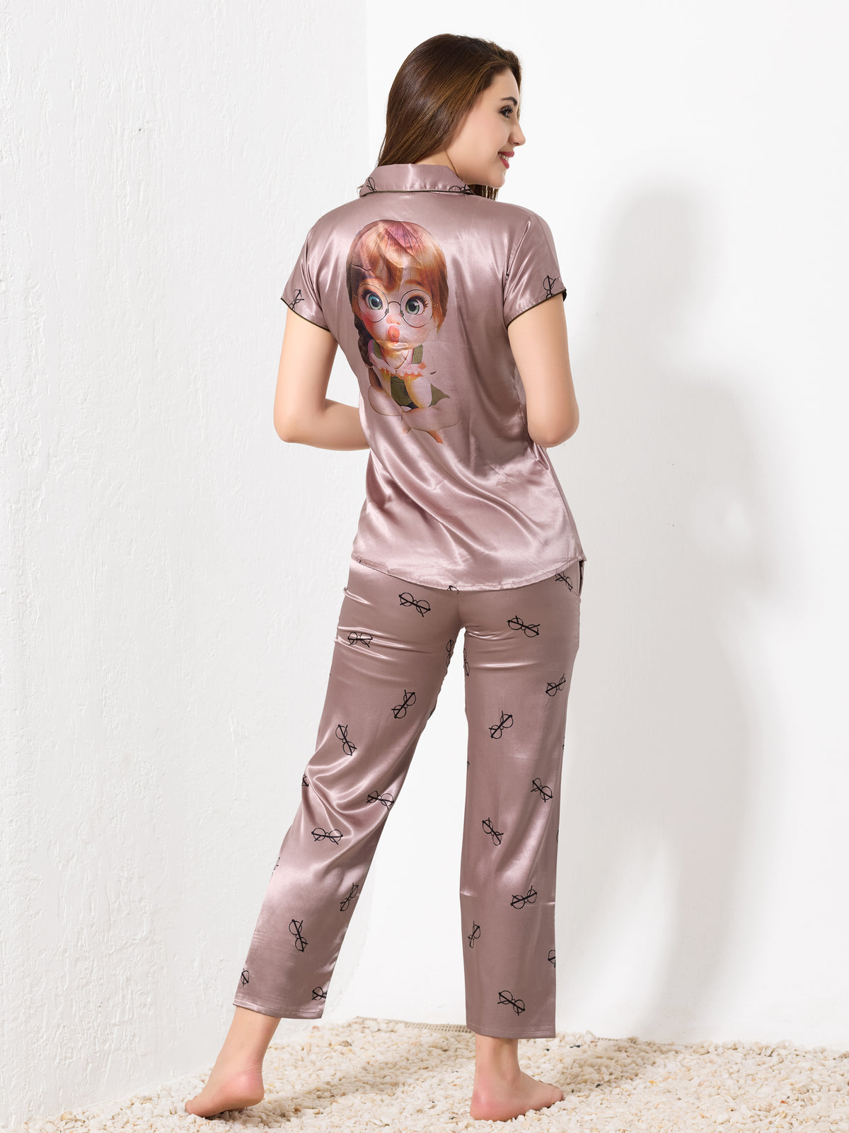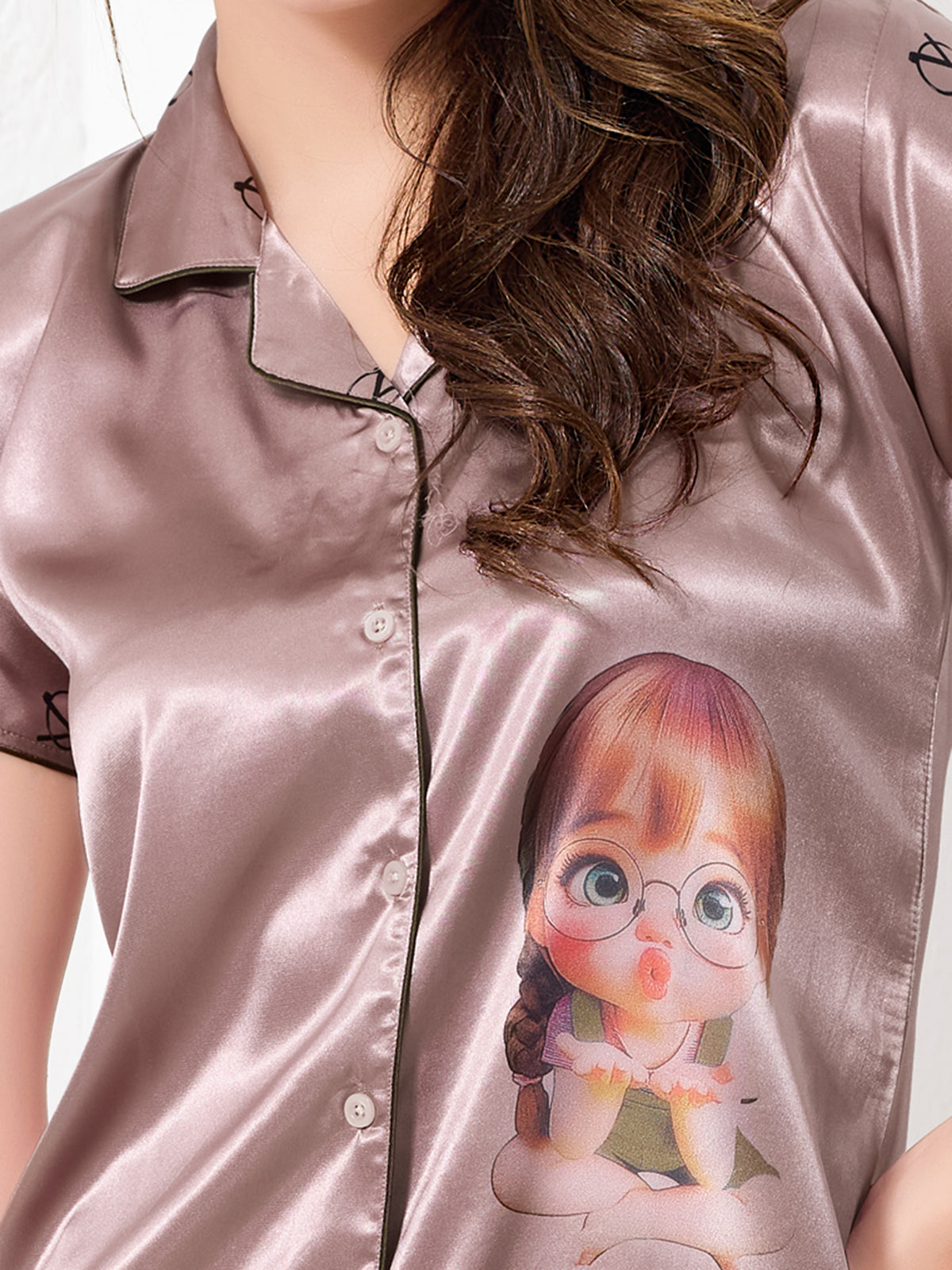 Priincezz Nightwear presents this luxurious 3-piece satin nightwear co-ord set, including a button-down shirt, matching pants, and a comfortable short. Designed in a soft mocha brown shade with elegant black bow prints, this set blends style, comfort, and affordability. The notched collar and silky-smooth satin fabric offer a premium feel, making it perfect for lounging in style. Indulge in effortless elegance and cozy relaxation with this must-have nightwear set!