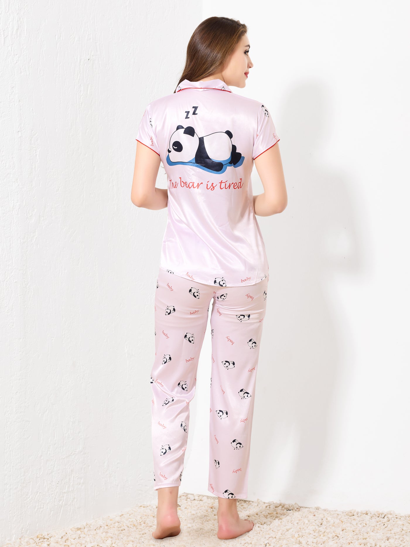 For a soft and dreamy aesthetic, Priincezz Nightwear presents this white satin nightwear set with a tint of light pink. This 3-piece co-ord set includes a button-down shirt, coordinating pants, and a short, offering a luxurious yet breathable fit. The delicate satin fabric flows effortlessly, while the notched collar and soft pink undertone create a subtle, feminine elegance.