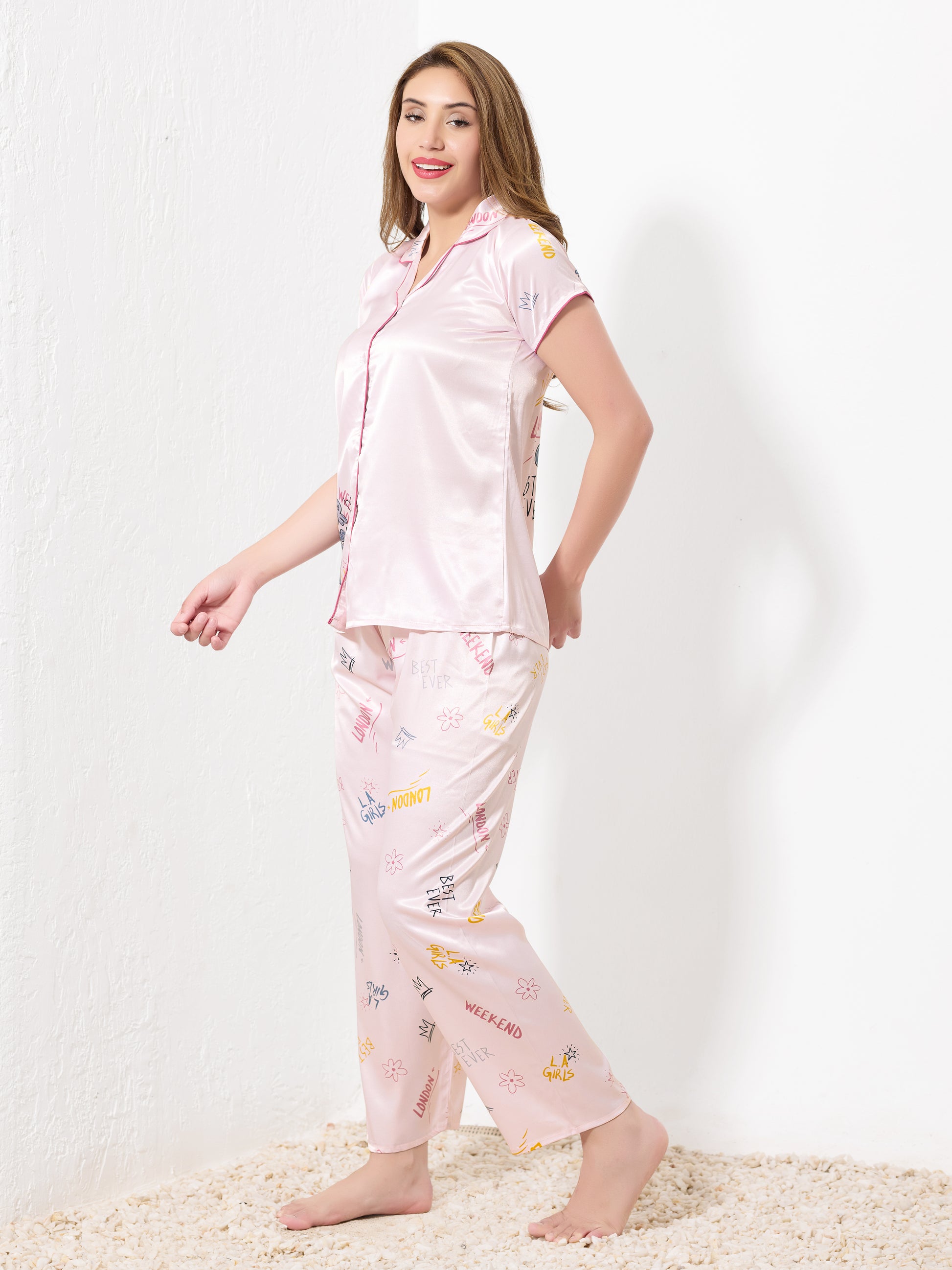 Pink Satin 3pc Nightsuit